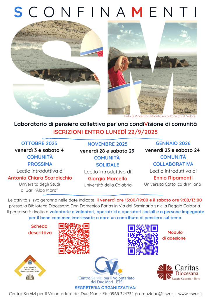 A questo sarà dedicato SconfinaMenti, il percorso-laboratorio promosso dal Centro Servizi per il Volontariato dei Due Mari – ETS con la Caritas Diocesana Reggio Calabria Bova e la Biblioteca Diocesana Domenico Farias.