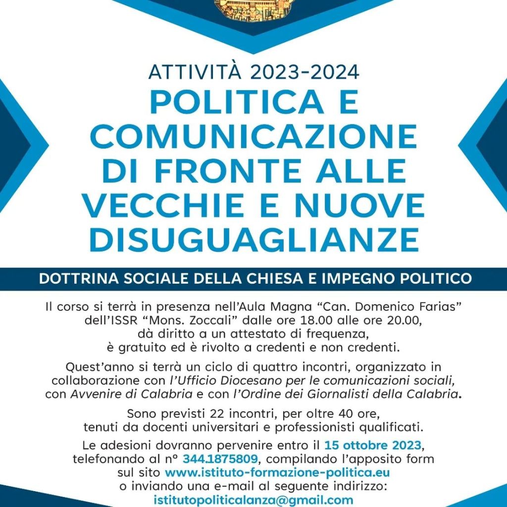 Programma dell’Istituto Superiore di Formazione Politico-Sociale “Mons. A. Lanza”