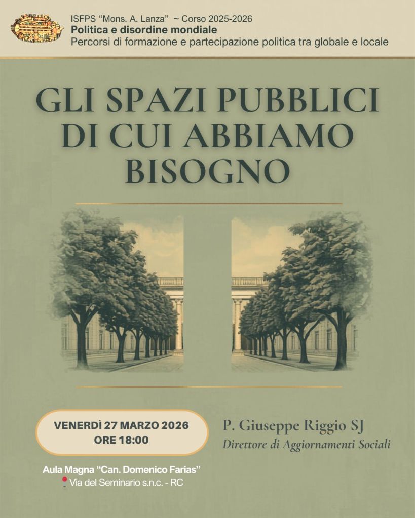 Gli spazi pubblici di cui abbiamo bisogno. Incontro ISFPS 27 marzo 2026 Condividi: Condividi su X (Si apre in una nuova finestra) X Condividi su Facebook (Si apre in una nuova finestra) Facebook Mi piace Caricamento... Correlati