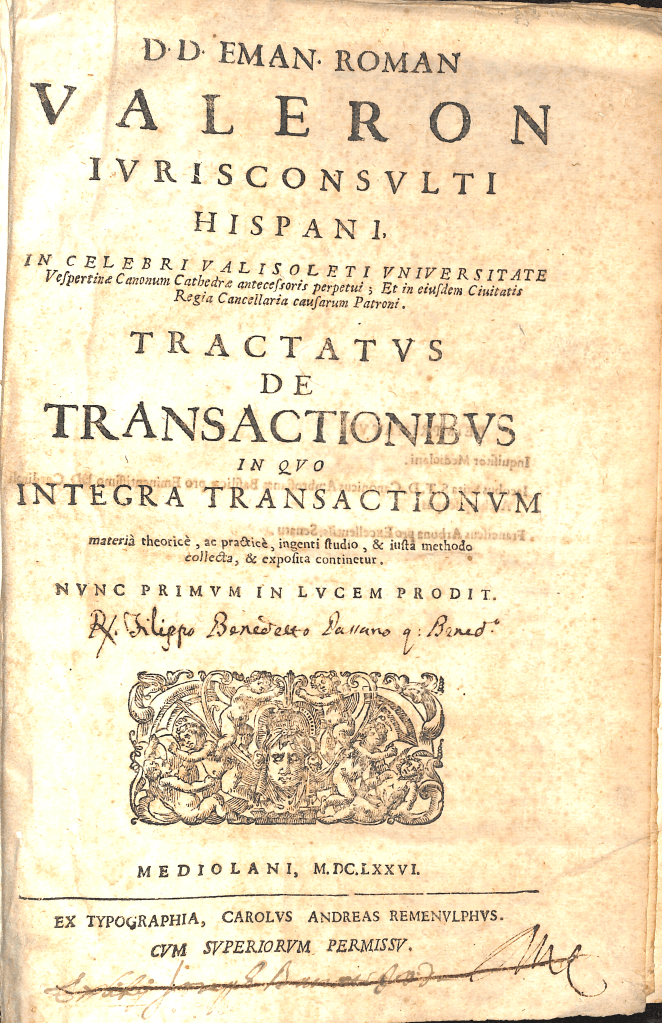 prodit / D.D. Eman Roman Valeron iurisconsulti Hispani